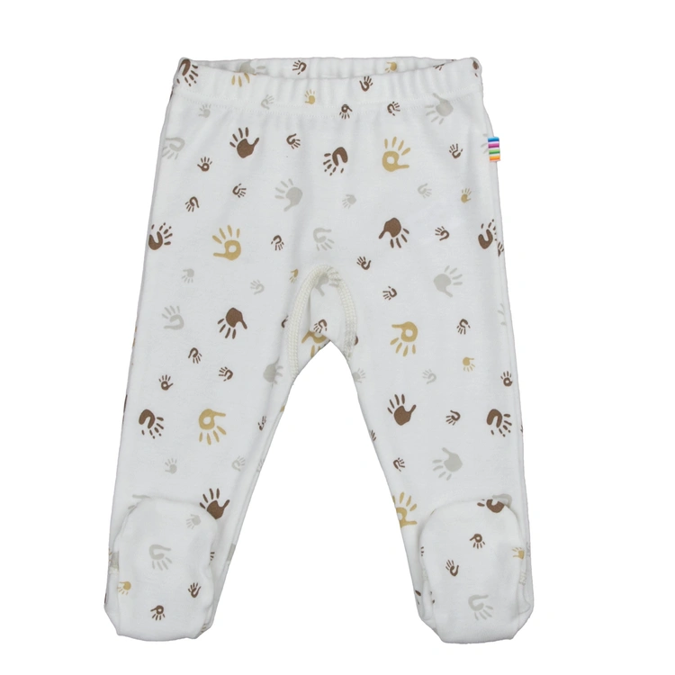 Leggings med fod i off-white økologisk bomuld med håndprint motiv