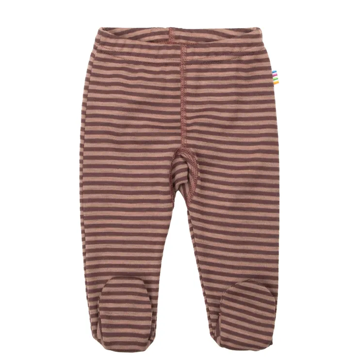 Leggings med fod i rosa merinould med striber