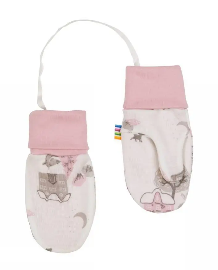 Luffer med tommelfinger i hvid og støvet lyserød uld og økologisk bambus