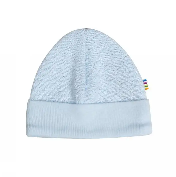 Lyseblå hue i økologisk strikket bomuld