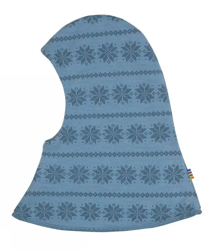 Lyseblå uld elefanthue med snefnug