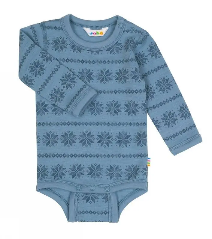 Lyseblå uldlbody med snefnug er lavet af 95% Uld og 5% Polyamid og i farven Snowflake Dreng. Vi fører et kæmpe udvalg af JOHA. Følgende størrelser er på lager (). Du får FRI FRAGT allerede fra 349,- hos Ugleunger når du handler Body lang ærme fra Joha