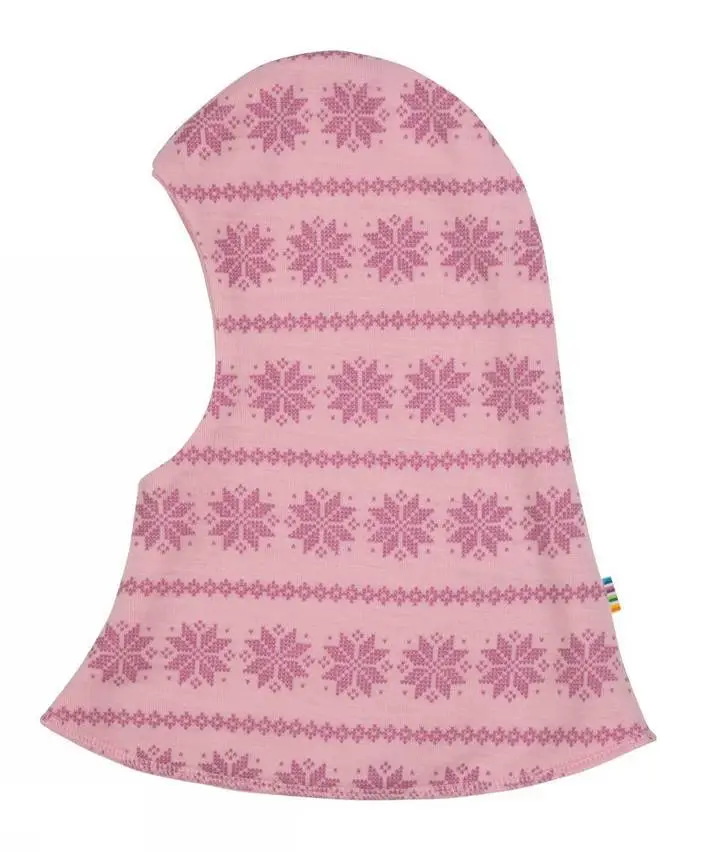 Lyserød uld elefanthue med snefnug