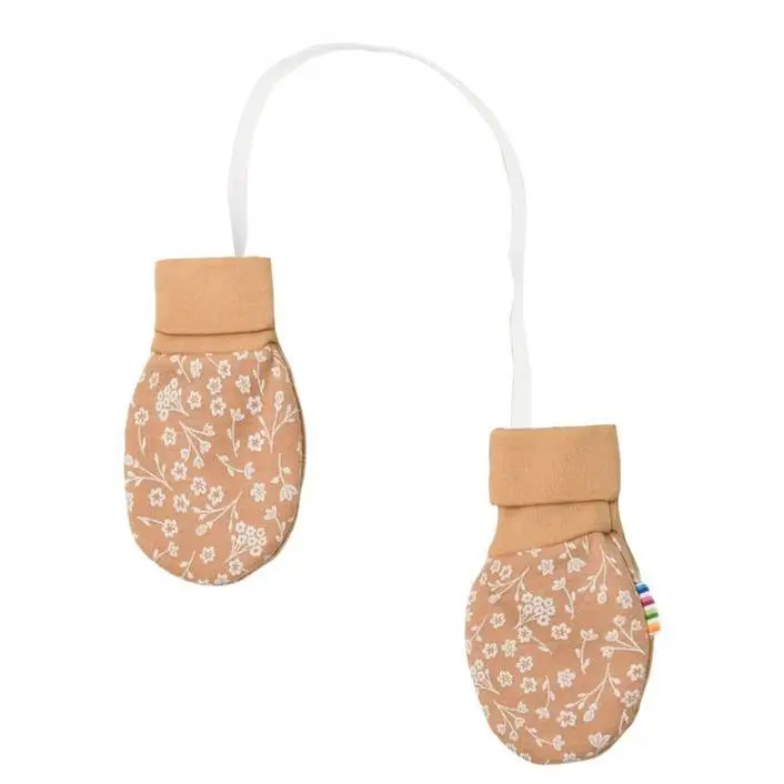 Luffer i brun uld og økologisk bomuld med blomster print
