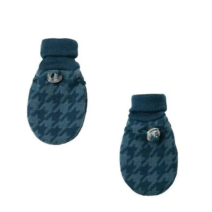 Luffer i blå vævet merinould med mønster