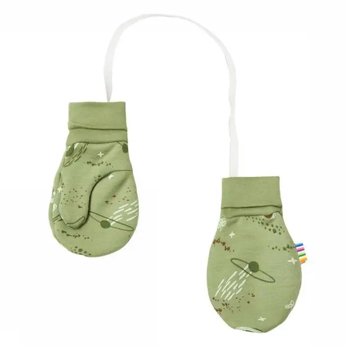 Luffer med tommel i salvie grøn uld og økologisk bomuld med satellit print