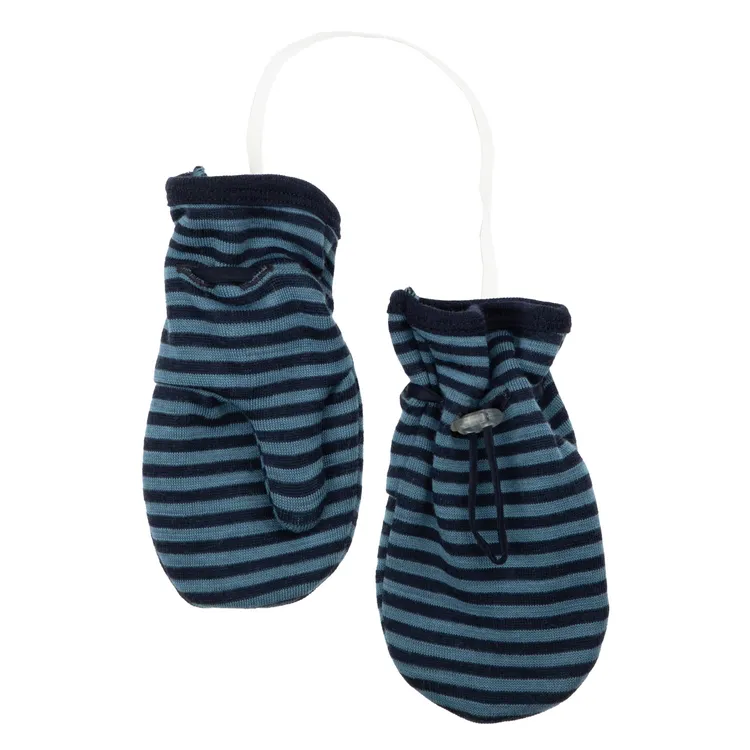 Luffer med tommel i dobbeltlags lyseblå merinould med striber