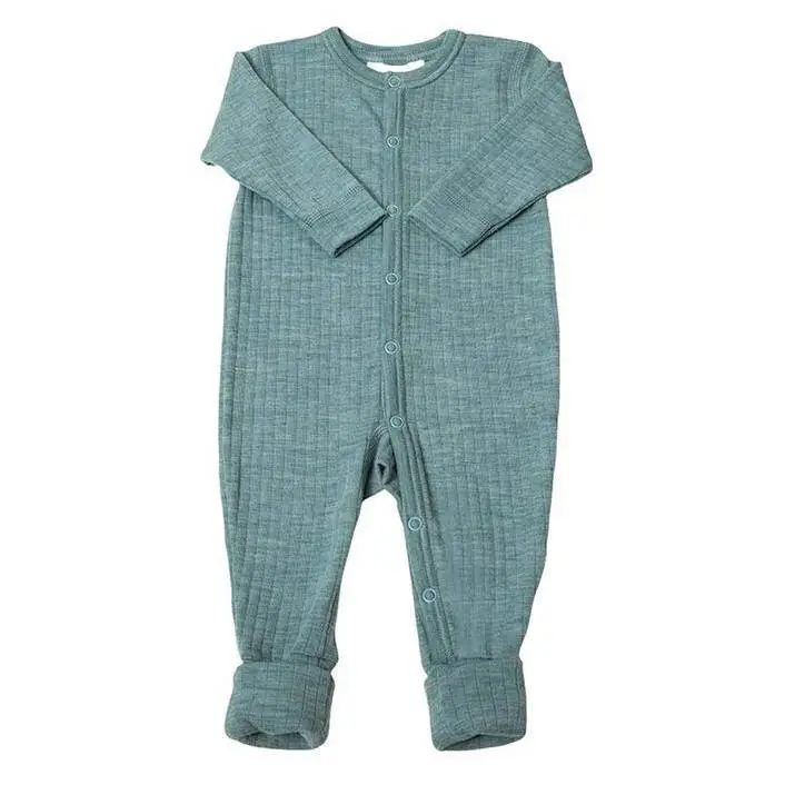 Sovedragt med skjult fod i turkis ribbet uld