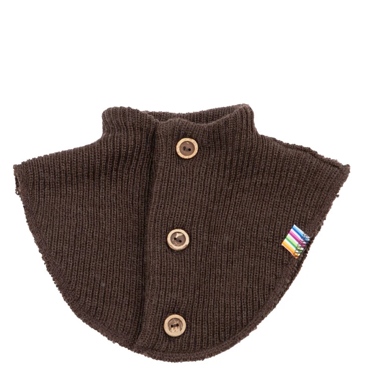 Halsedisse med knapper i brun i ribbet struktur i 100% merinould