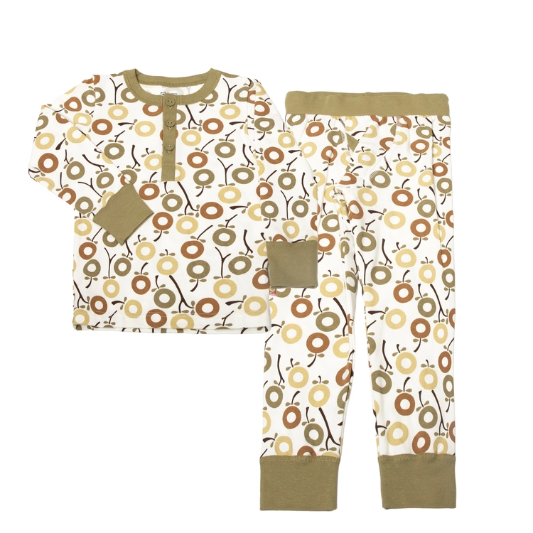 Pyjamas sæt råhvid økologisk bomuld og grøn kant med miniæble print