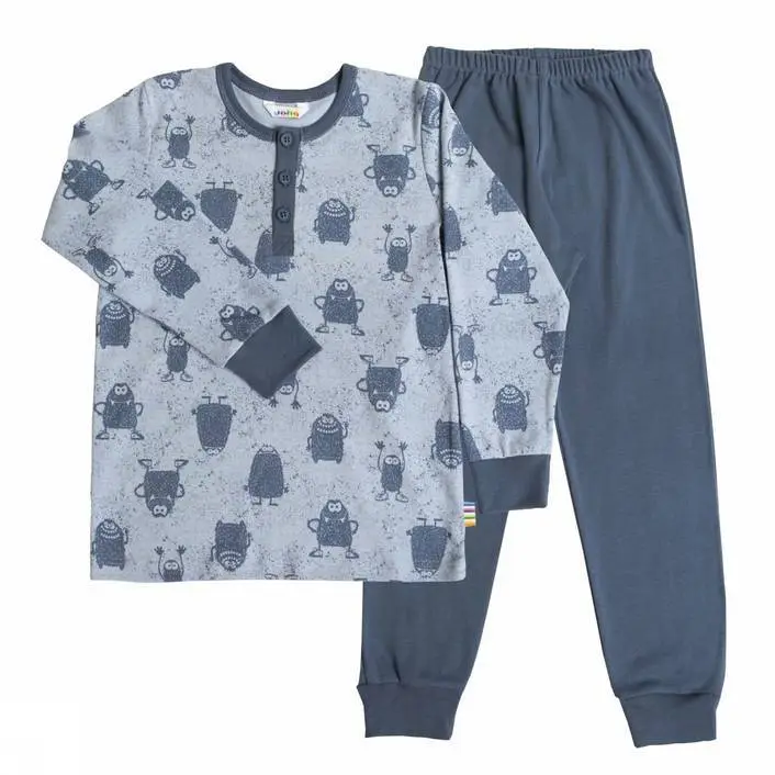 Pyjamas blå økologisk bomuld med støvmonsterprint