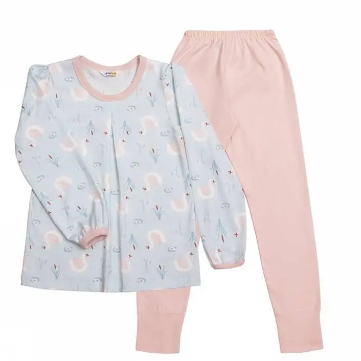 Pyjamas lyseblå overdel med svaner og rosa bukser