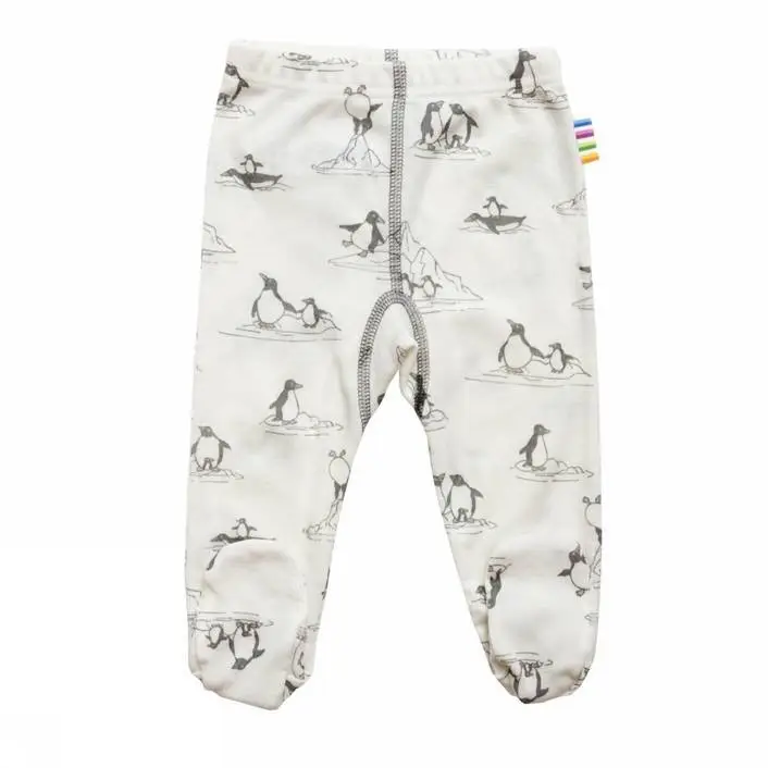 Råhvide uld-silke leggings/fod med pingvin