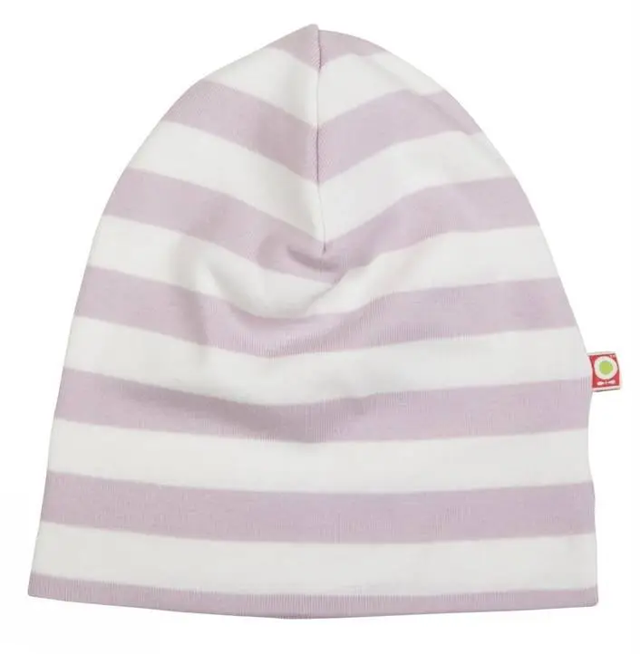 Rosa og hvidstribet hue i økologisk bomuld