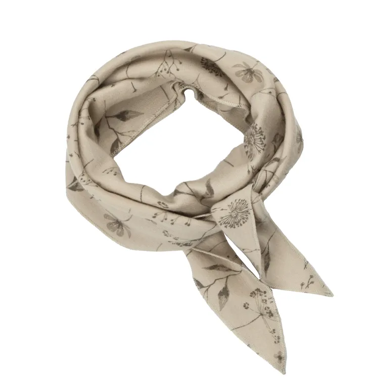 Halstørklæde i lys beige med mælkebøtteprint i merinould