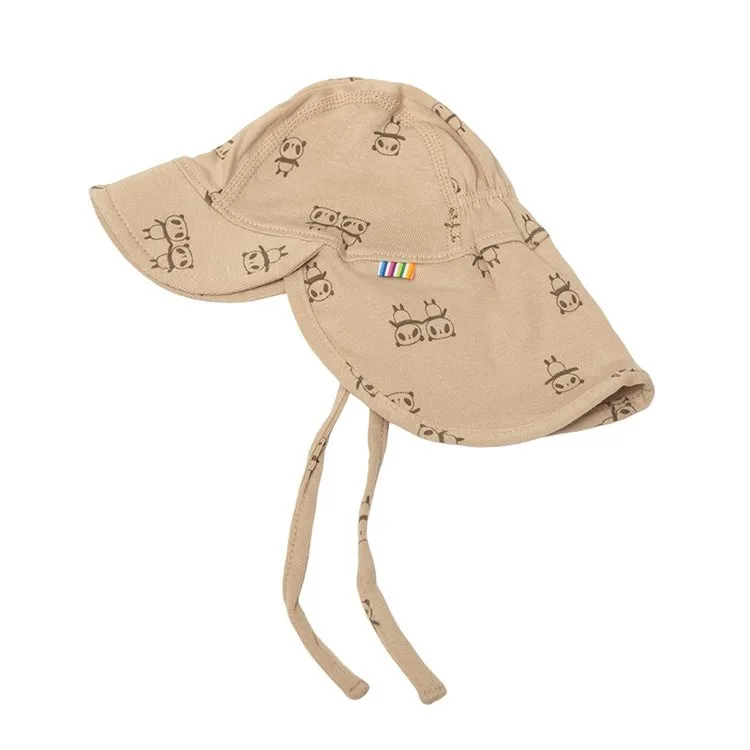 Solhat i flot beige-brun økologisk bomuld med pandaprint