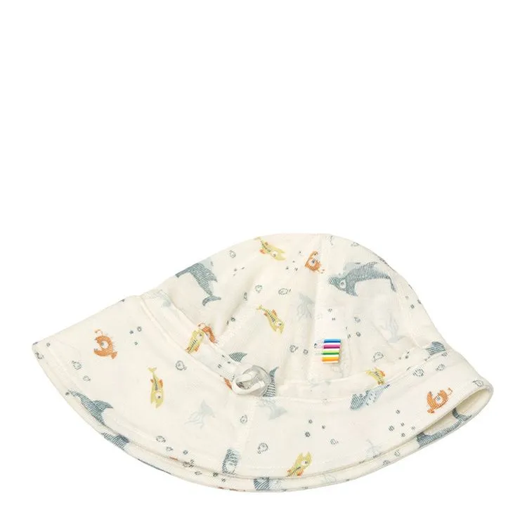 Solhat i råhvid og lyseblå sommeruld med print - SEA