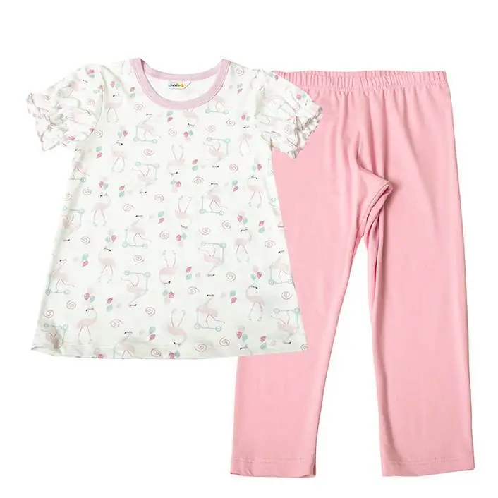 Sommer pyjamas hvid og lyserød økologisk bambus - Flamingo