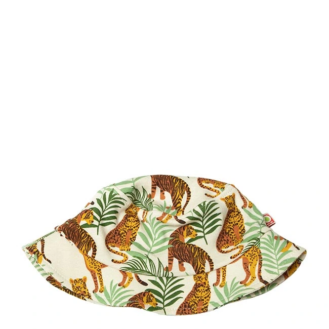Solhat grøn og gul økologisk bomuld med tigerprint