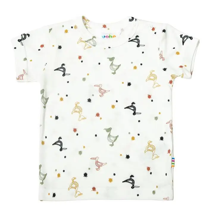 T-shirt i råhvid økologisk bambus - Pelikan print