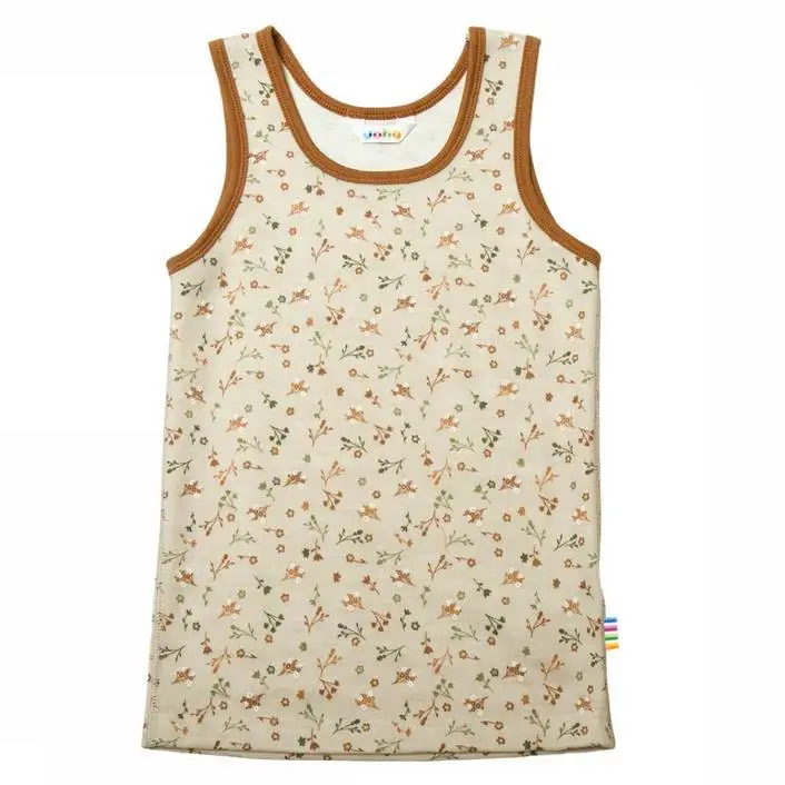 Undertrøje sand-kobberfarve i uld og bambus med blomsterprint
