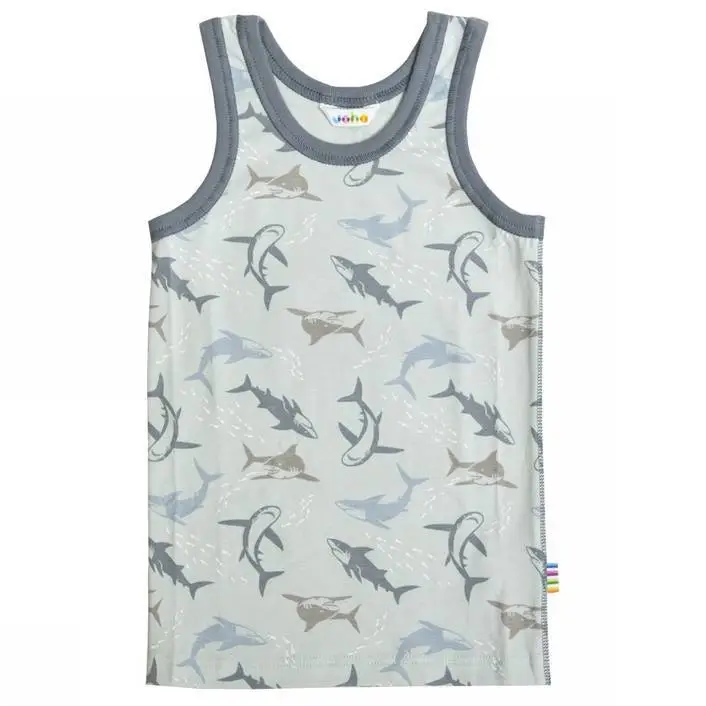 Undertrøje blå økologisk bomuld med hajprint