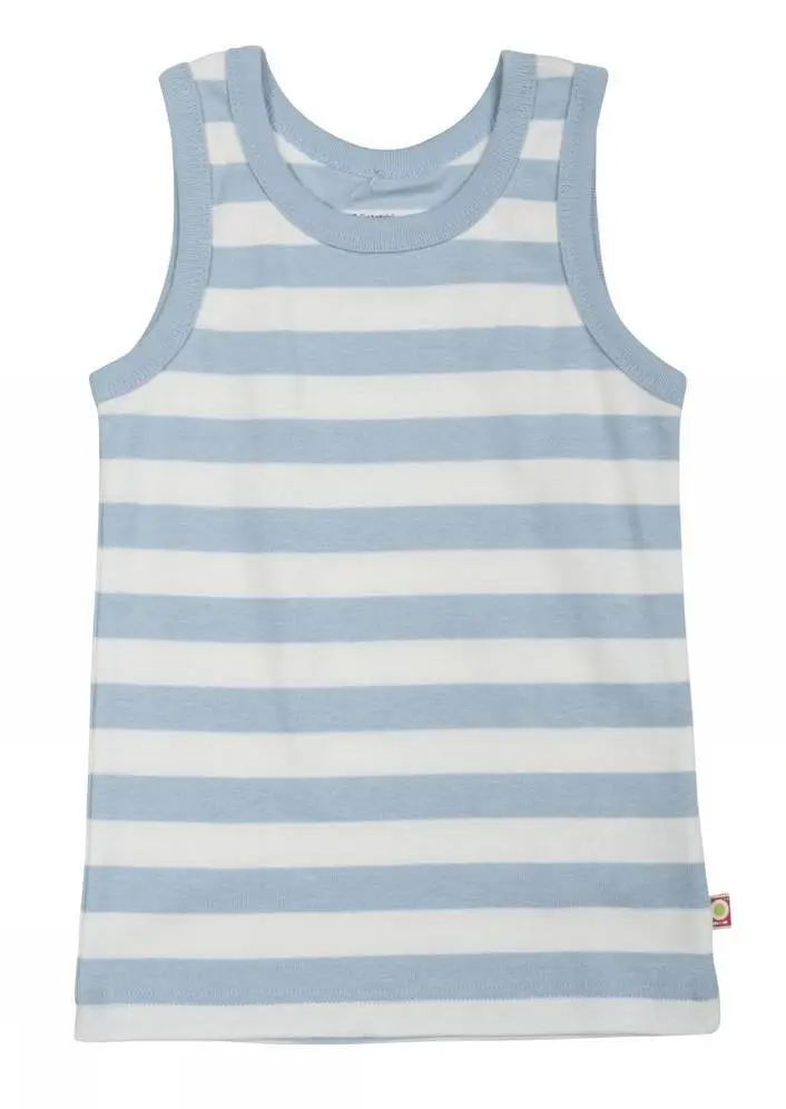 Undertrøje i lyseblå og hvidstribet økologisk bomuld
