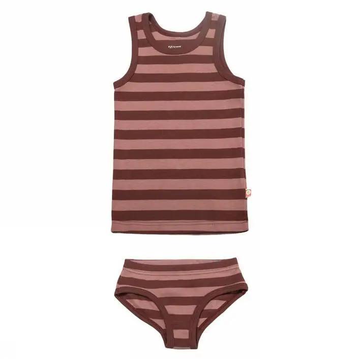 Undertøjssæt mahogni-stribet økologisk bomuld