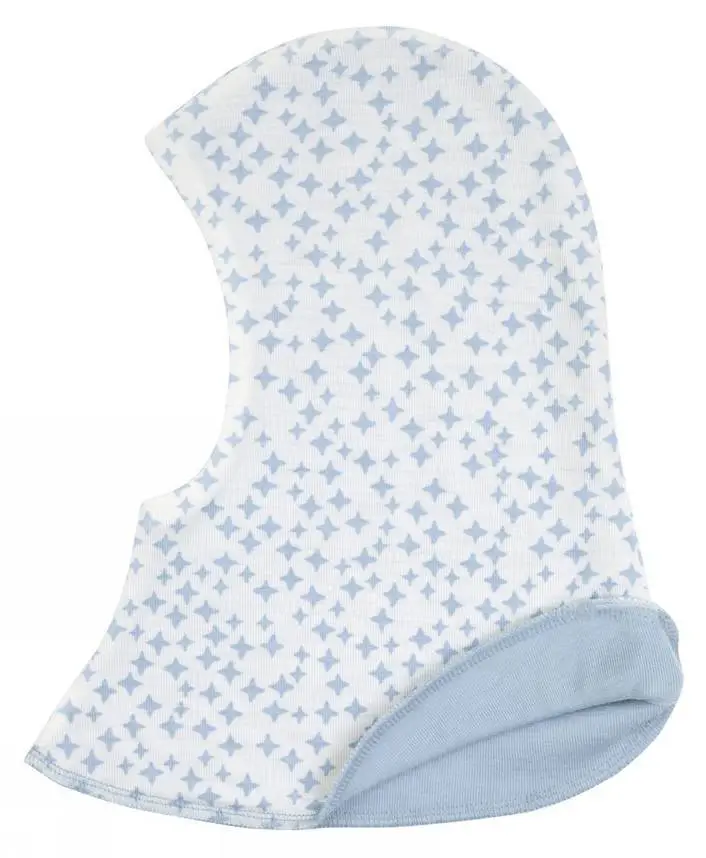 Vendbar elefanthue i lyseblå og hvid uld-silke